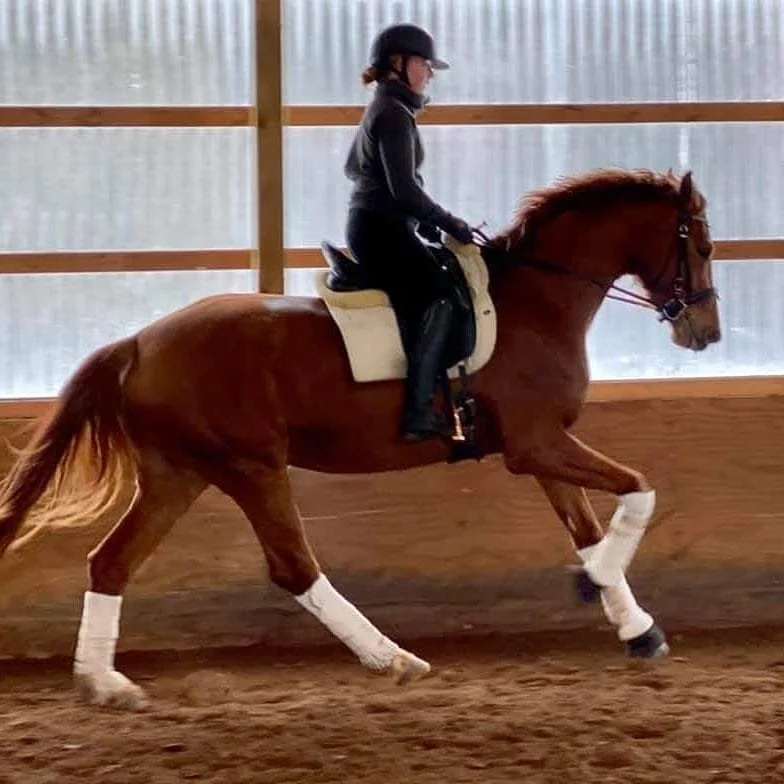 Keegan riding Dreamcatcher Equestrian's young mare, Verb.Pr. Hot Toddy, earning her title during her GOV mare performance test.
